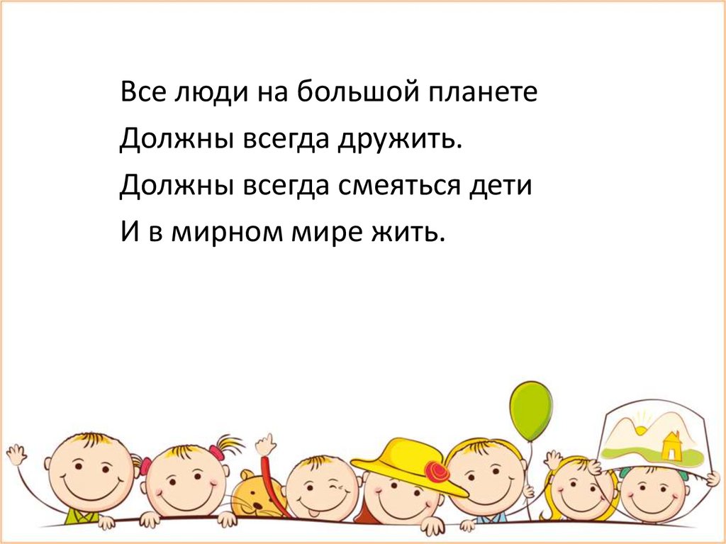 Все люди на большой планетеДолжны всегда дружить.