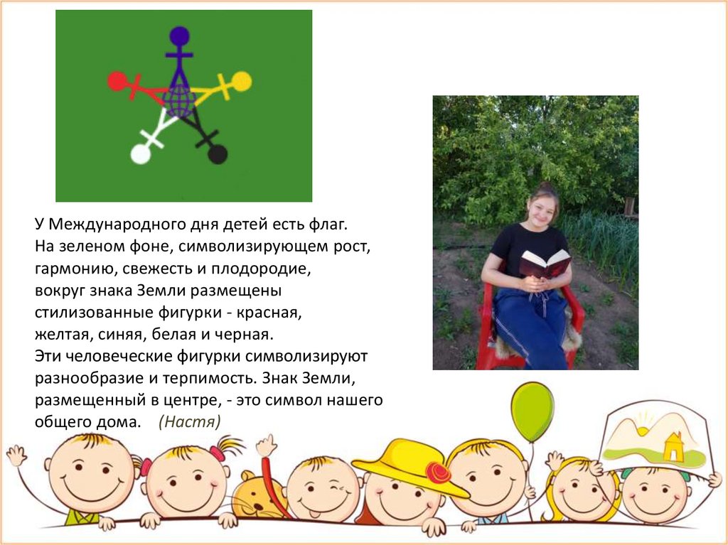 У Международного дня детей есть флаг.На зеленом фоне, символизирующем рост,