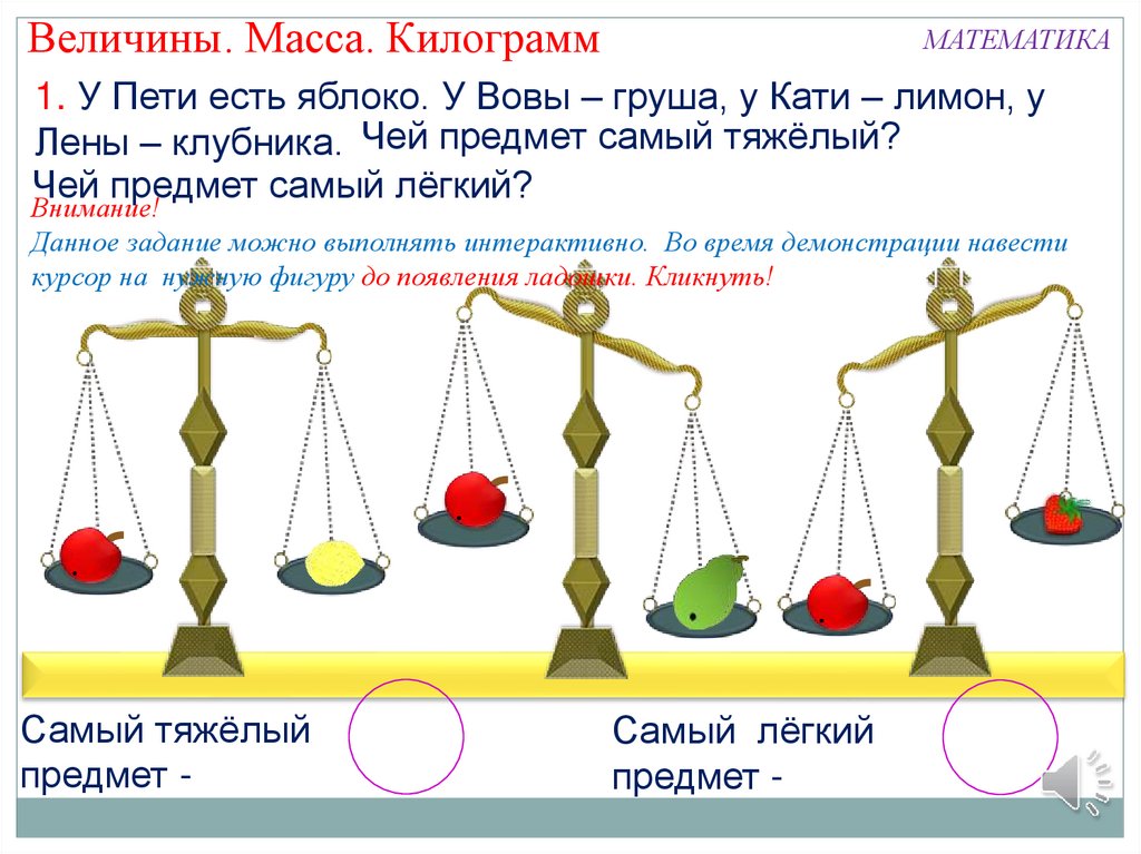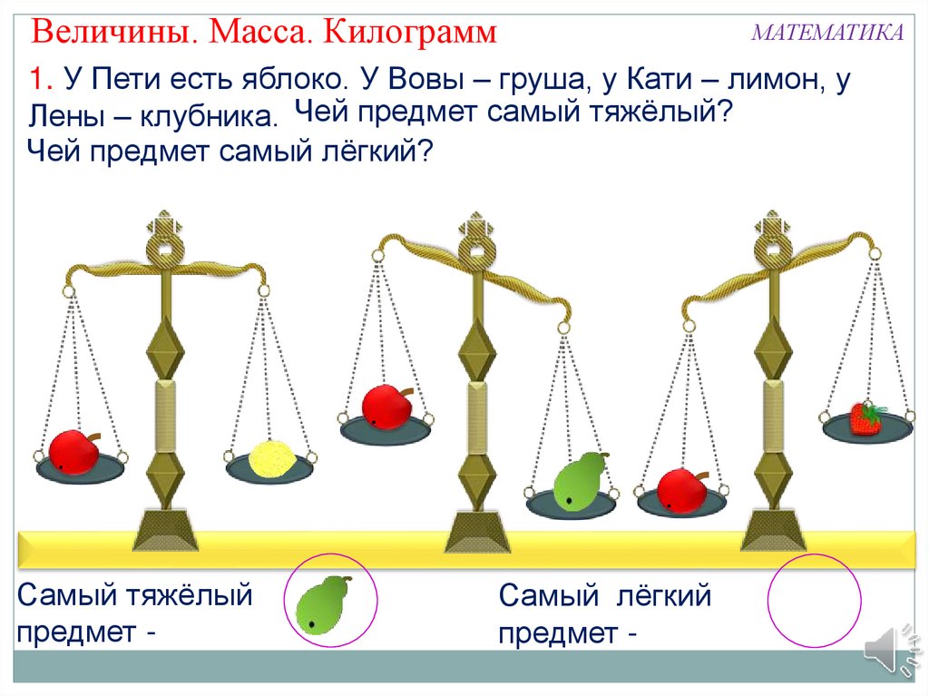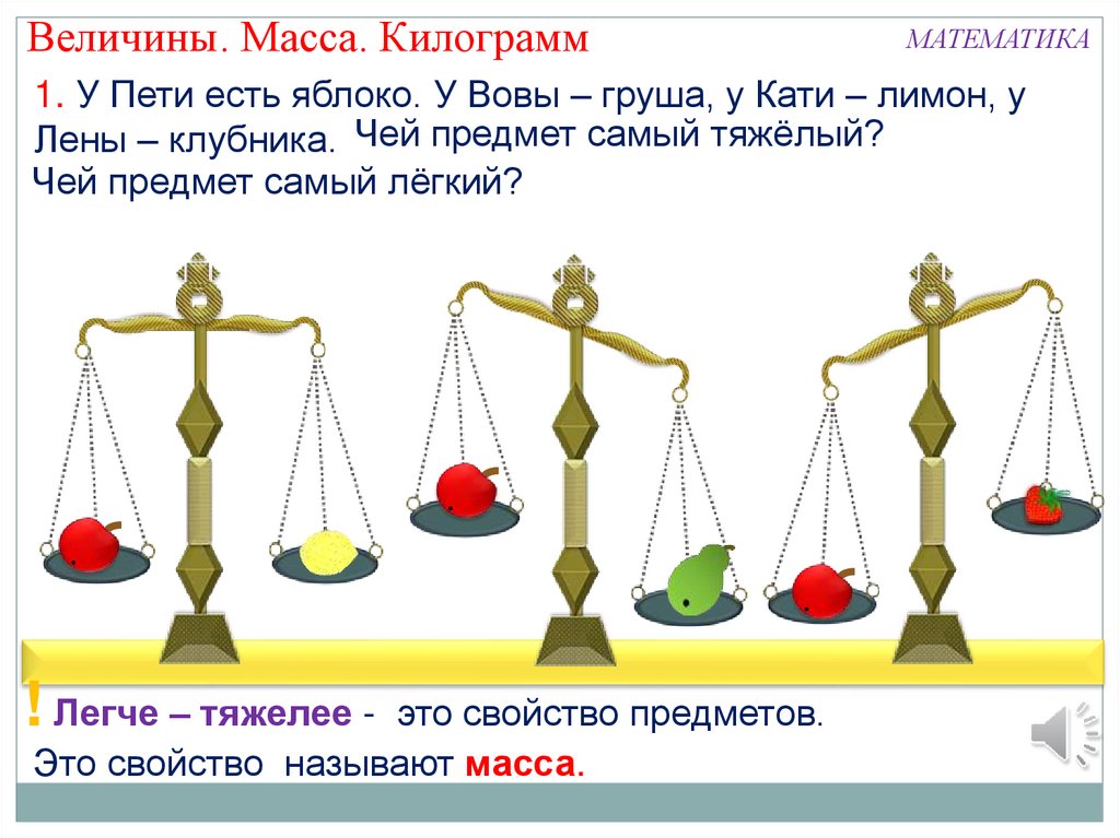 Величины. Масса. КилограммМАТЕМАТИКА