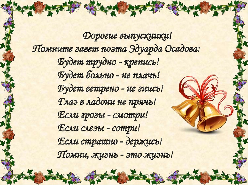 Дорогие выпускники!Помните завет поэта Эдуарда Осадова: