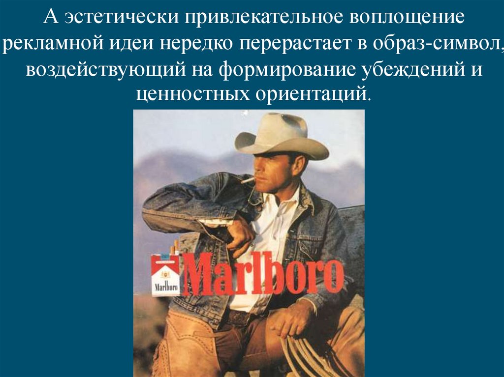 А эстетически привлекательное воплощениерекламной идеи нередко перерастает в образ-символ,