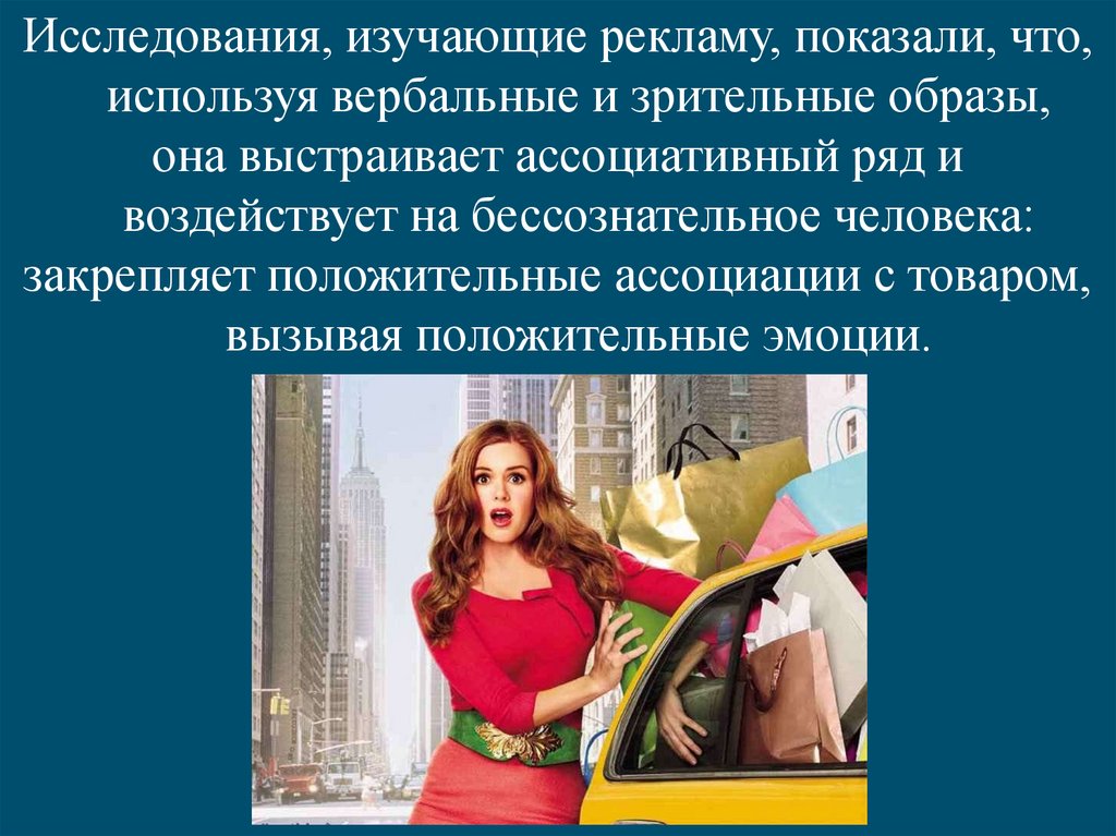 Исследования, изучающие рекламу, показали, что,используя вербальные и зрительные образы,