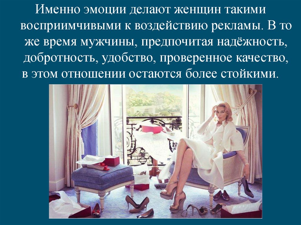 Именно эмоции делают женщин такимивосприимчивыми к воздействию рекламы. В то