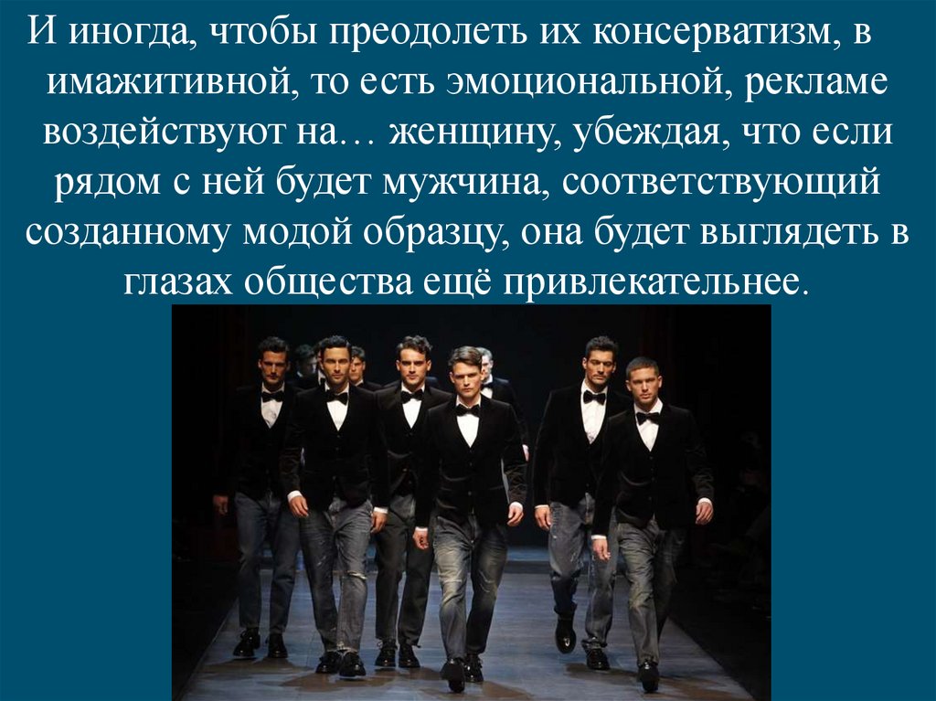 И иногда, чтобы преодолеть их консерватизм, вимажитивной, то есть эмоциональной, рекламе