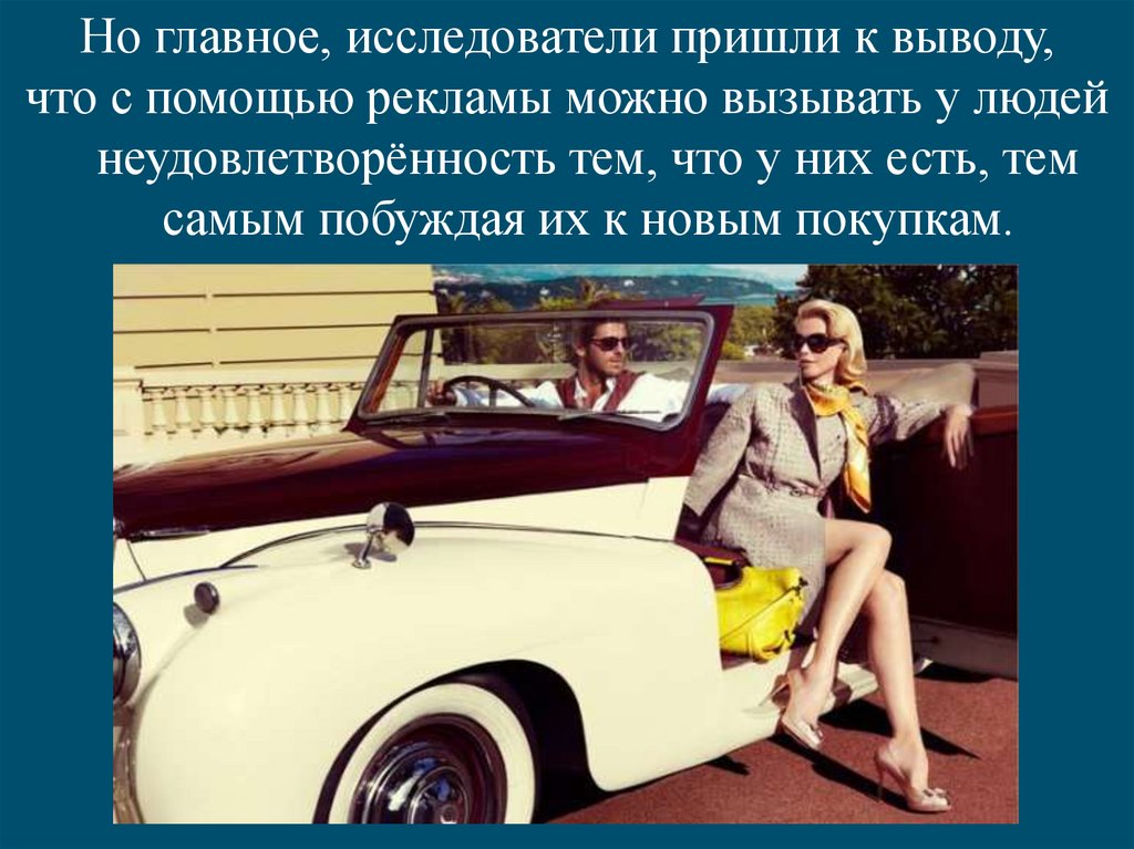 Но главное, исследователи пришли к выводу,что с помощью рекламы можно вызывать у людей