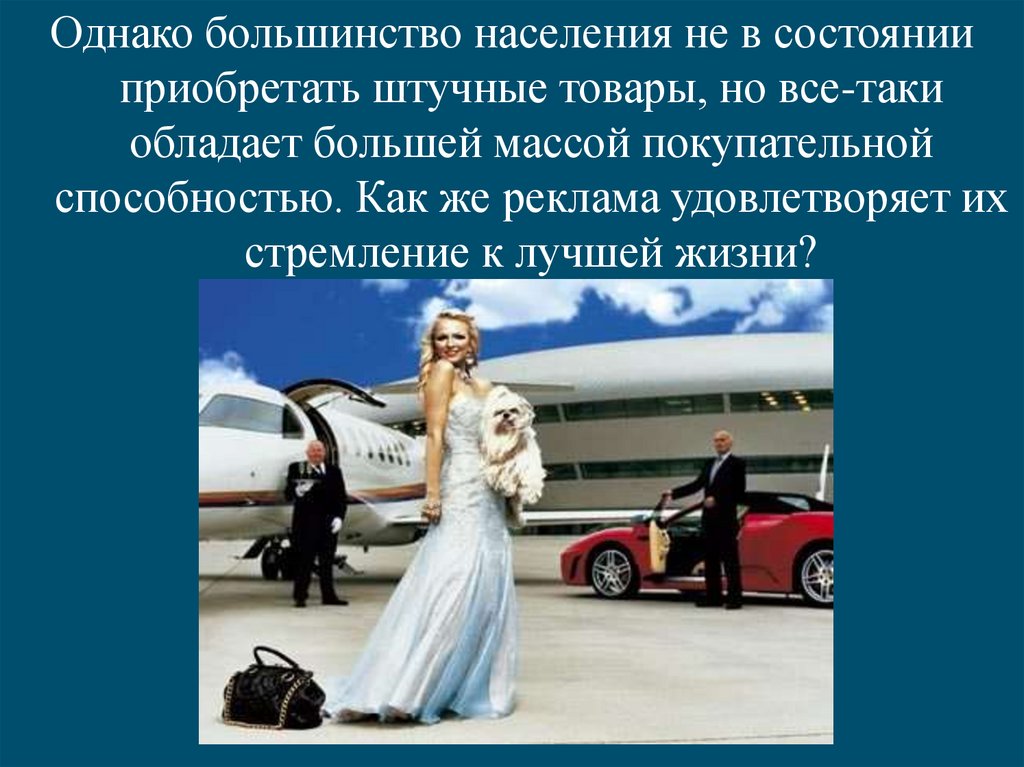 Избегая прямой императивности, рекламаобостряет стремление обладать материальными