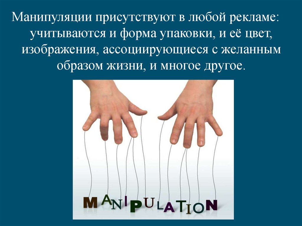 Манипуляции присутствуют в любой рекламе:учитываются и форма упаковки, и её цвет,