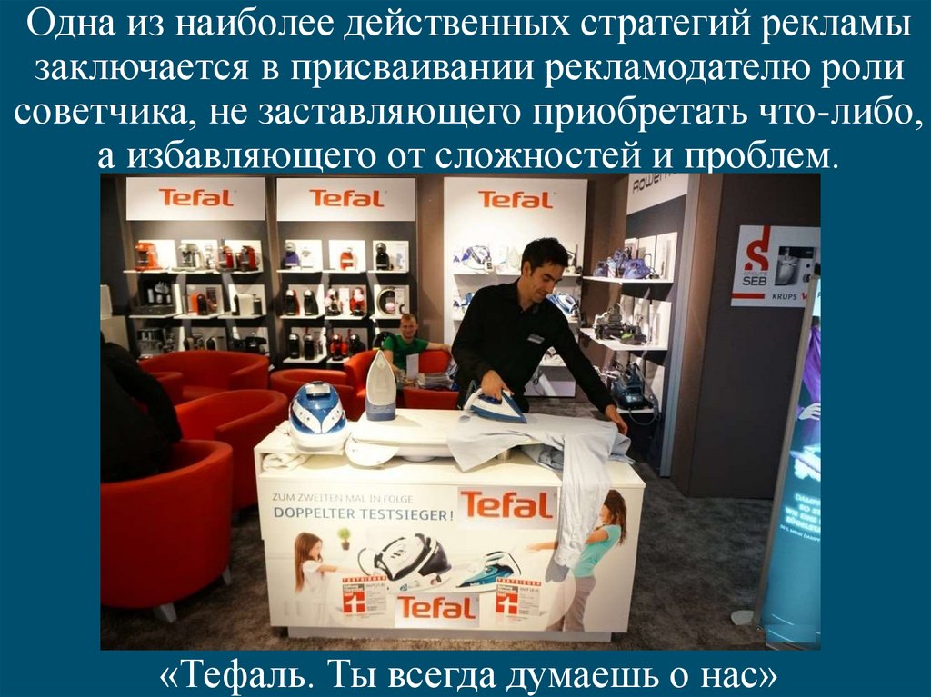 Одна из наиболее действенных стратегий рекламызаключается в присваивании рекламодателю роли