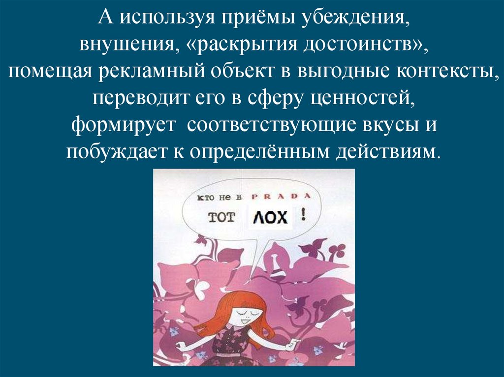 А используя приёмы убеждения,внушения, «раскрытия достоинств»,