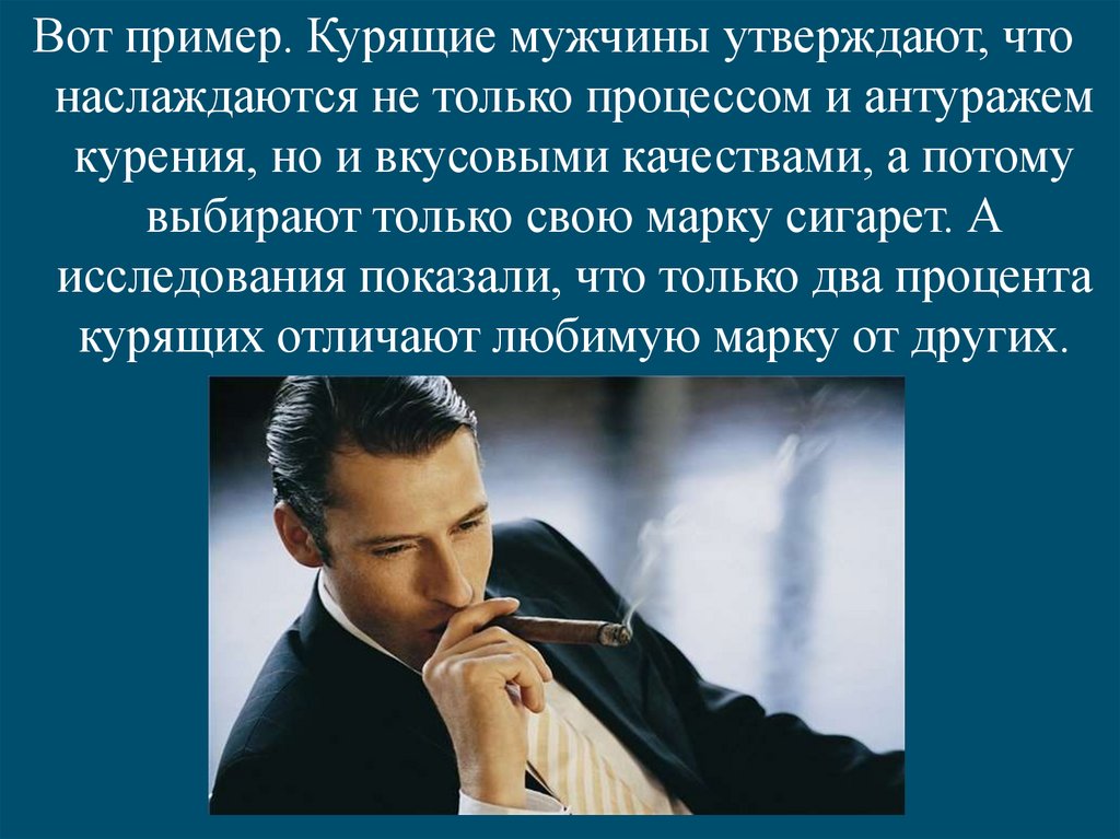 Вот пример. Курящие мужчины утверждают, чтонаслаждаются не только процессом и антуражем