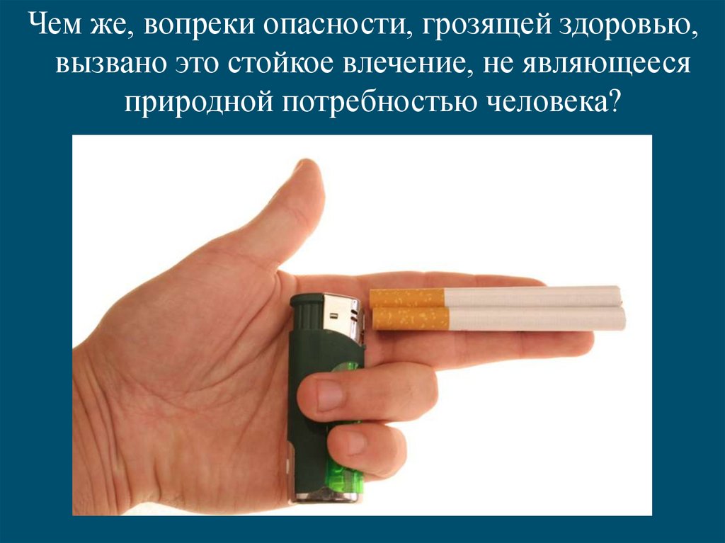 Чем же, вопреки опасности, грозящей здоровью,вызвано это стойкое влечение, не являющееся