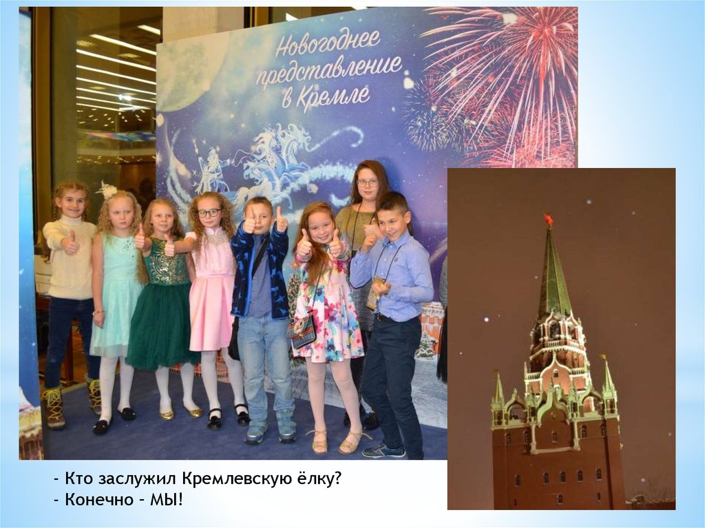 - Кто заслужил Кремлевскую ёлку?- Конечно – МЫ!