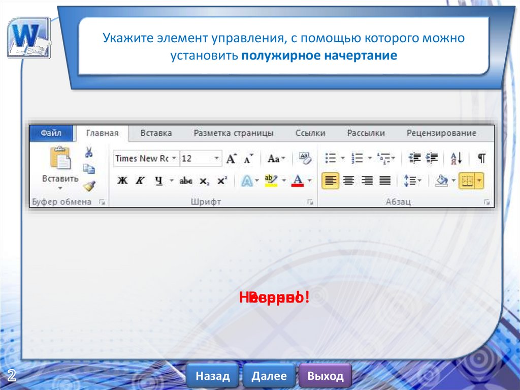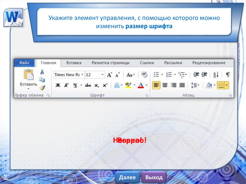 Укажите элемент управления, с помощью которого можноизменить размер шрифта