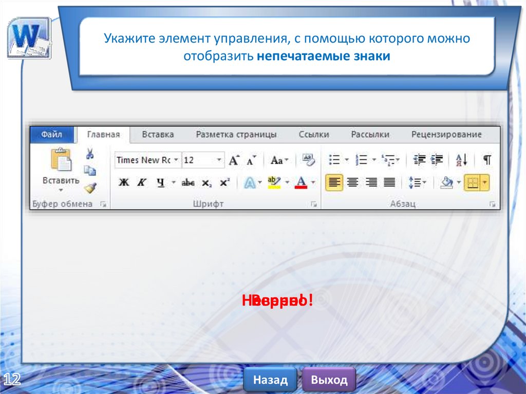 Укажите элемент управления, с помощью которого можноотобразить непечатаемые знаки