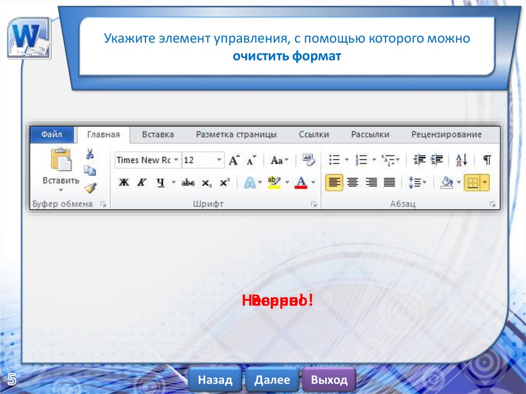 Укажите элемент управления, с помощью которого можноочистить формат