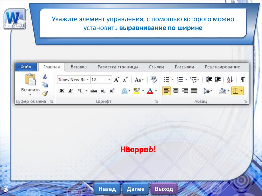 Укажите элемент управления, с помощью которого можноустановить выравнивание по ширине