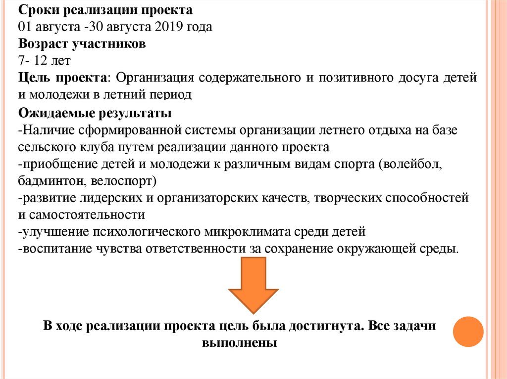 Сроки реализации проекта01 августа -30 августа 2019 года