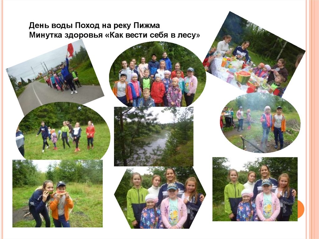 День воды Поход на реку ПижмаМинутка здоровья «Как вести себя в лесу»
