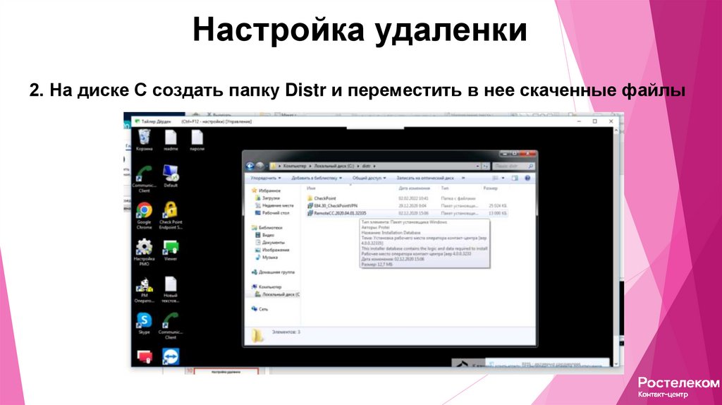 Настройка удаленки2. На диске С создать папку Distr и переместить в нее скаченные файлы