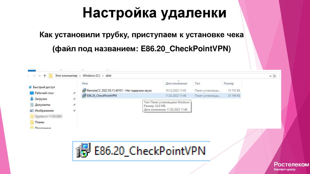 Настройка удаленки6. Начало установки файла (файл под названием: E86.20_CheckPointVPN)