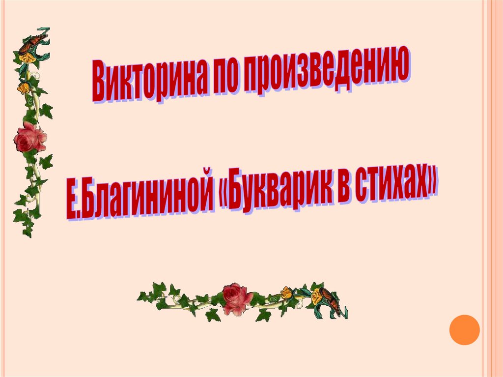 Викторина по произведению Е. Благининой "Букварик в стихах"