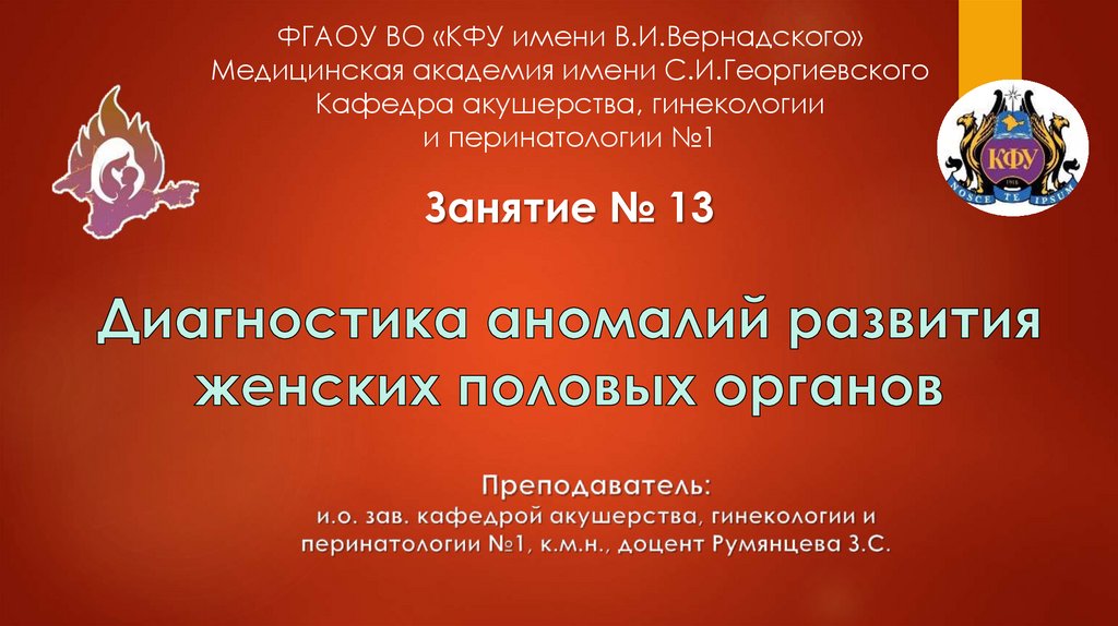 Диагностика аномалий развития женских половых органов. Занятие №13