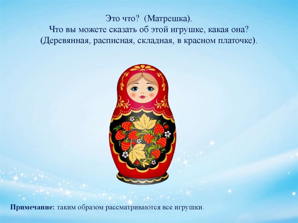 Это что? (Матрешка).Что вы можете сказать об этой игрушке, какая она?