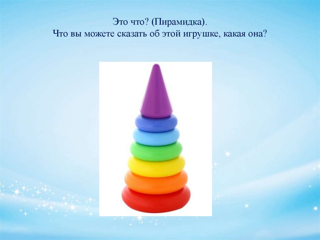 Это что? (Пирамидка).Что вы можете сказать об этой игрушке, какая она?