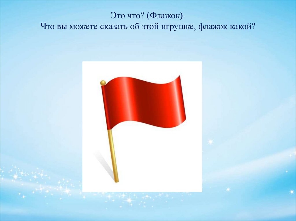 Это что? (Флажок).Что вы можете сказать об этой игрушке, флажок какой?