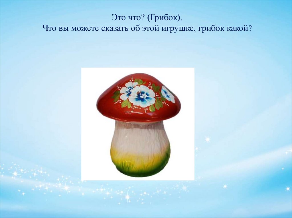 Это что? (Грибок).Что вы можете сказать об этой игрушке, грибок какой?