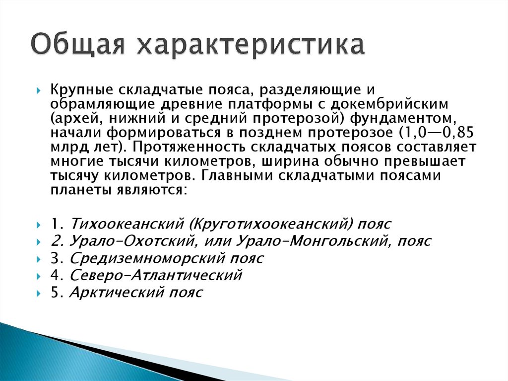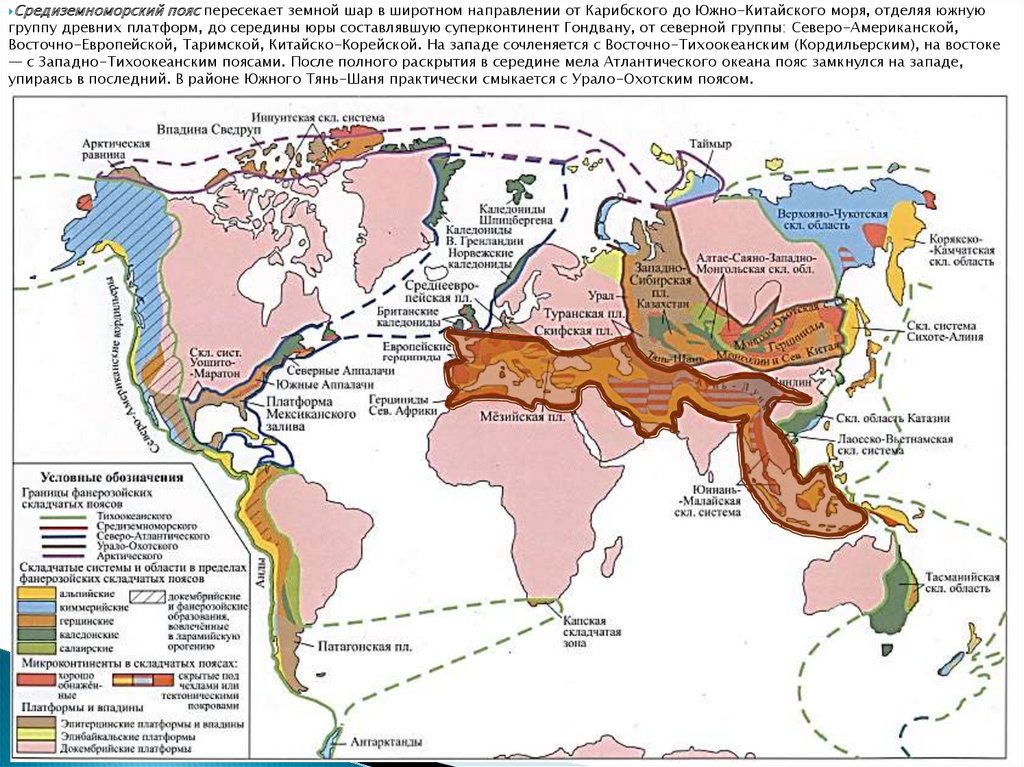 Крупные складчатые пояса, разделяющие иобрамляющие древние платформы с докембрийским