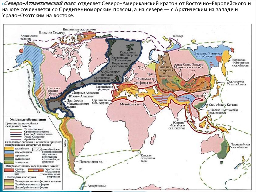 Северо-Атлантическийпояс отделяет Северо-Американский кратон от Восточно-Европейского и