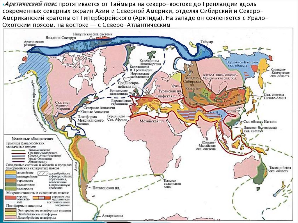 современных северных окраин Азии и Северной Америки, отделяя Сибирский и СевероАмсриканский кратоны от Гиперборейского (Арктиды). На западе он сочленяется с УралоОхотским поясом, на востоке — с Северо-Атлантическим