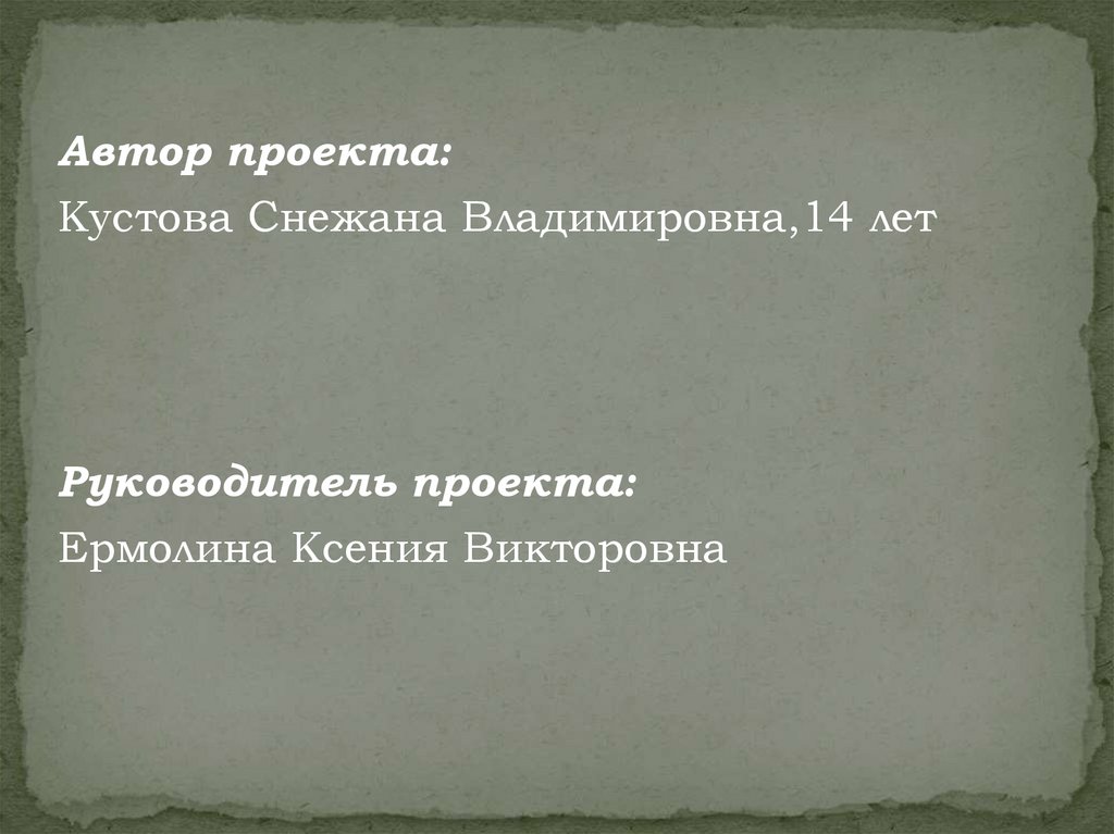 Автор проекта:Кустова Снежана Владимировна,14 лет