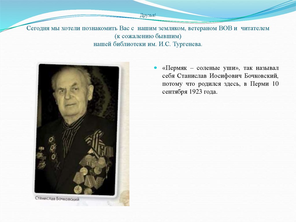 Друзья!Сегодня мы хотели познакомить Вас с нашим земляком, ветераном ВОВ и читателем