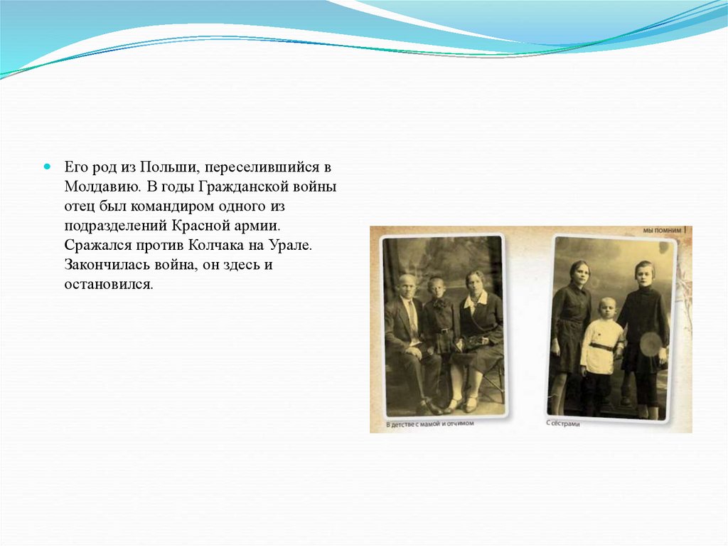 Его род из Польши, переселившийся вМолдавию. В годы Гражданской войны