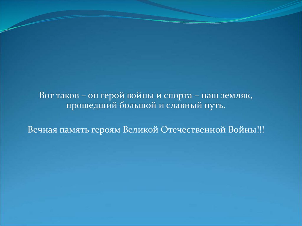 Вот таков – он герой войны и спорта – наш земляк,прошедший большой и славный путь.