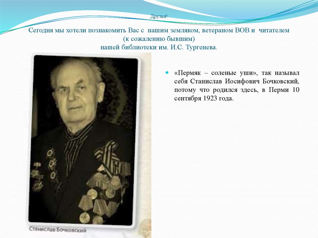 Сегодня мы хотели познакомить Вас с нашим земляком, ветераном ВОВ и читателем