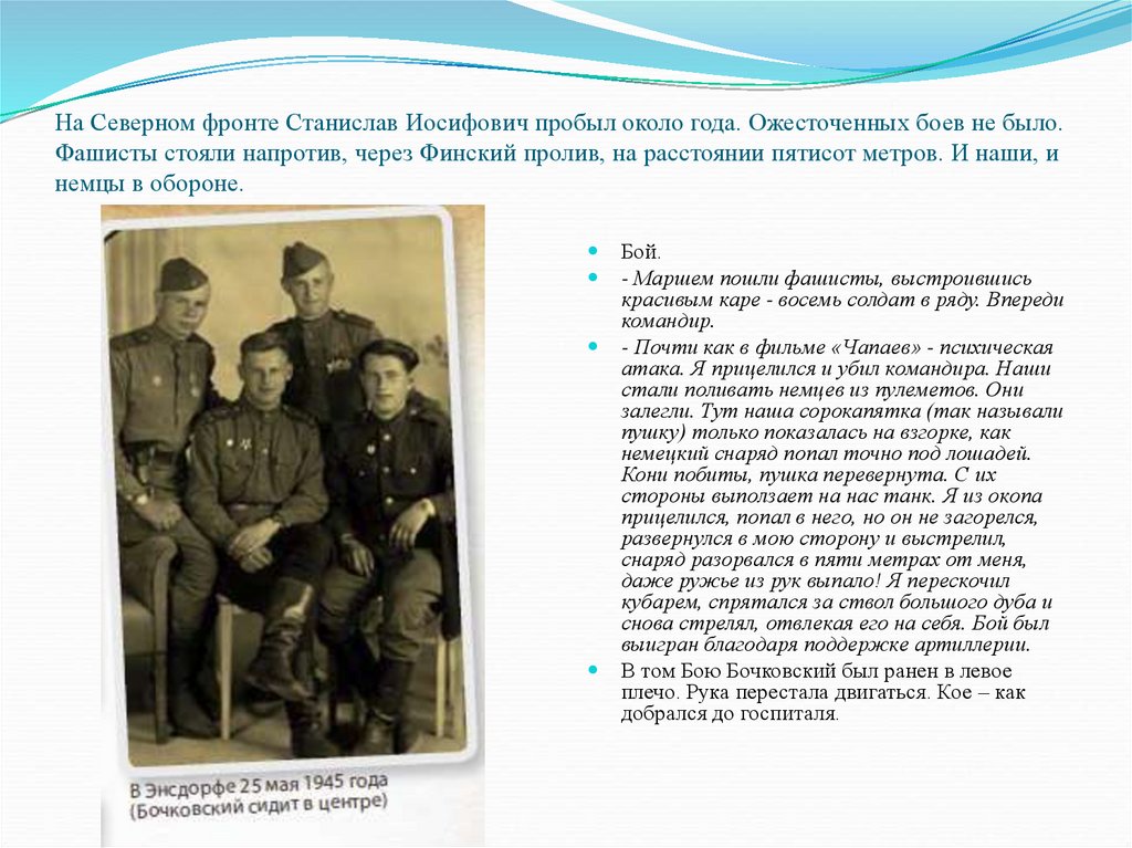 На Северном фронте Станислав Иосифович пробыл около года. Ожесточенных боев не было.