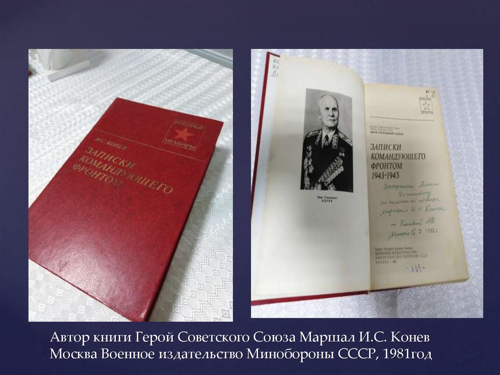 Автор книги Герой Советского Союза Маршал И.С. КоневМосква Военное издательство Минобороны СССР, 1981год