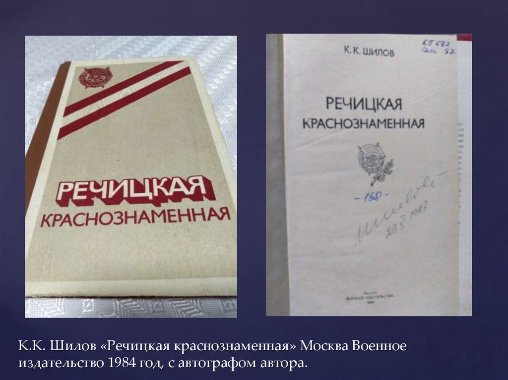 К.К. Шилов «Речицкая краснознаменная» Москва Военноеиздательство 1984 год, с автографом автора.