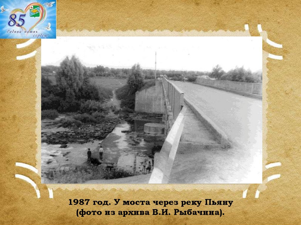 1987 год. У моста через реку Пьяну(фото из архива В.И. Рыбачина).
