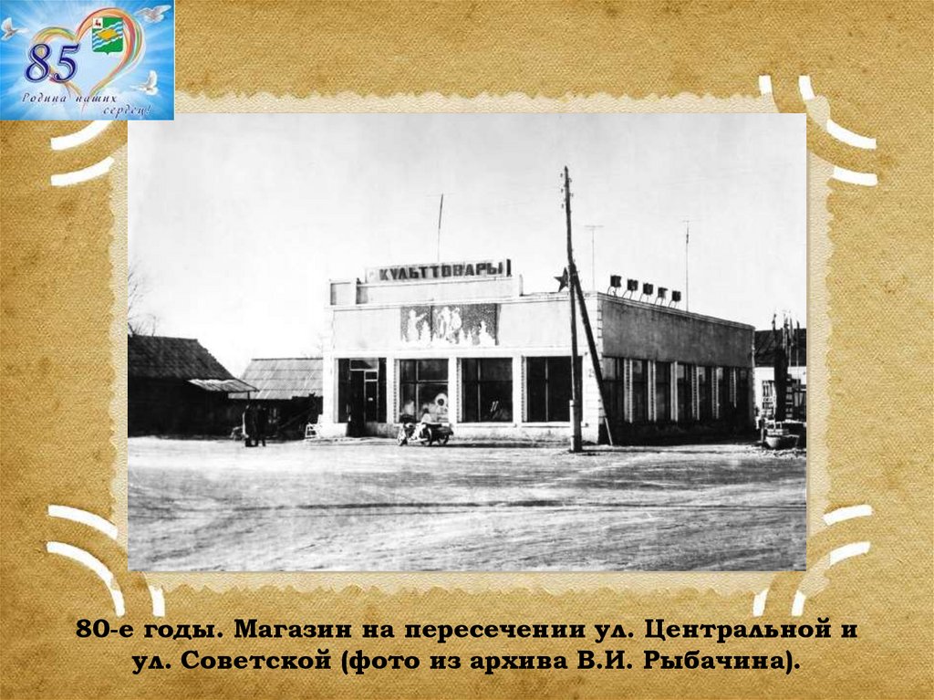 80-е годы. Магазин на пересечении ул. Центральной иул. Советской (фото из архива В.И. Рыбачина).