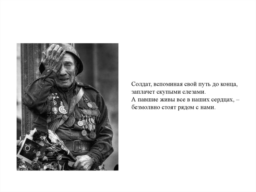 Солдат, вспоминая свой путь до конца,заплачет скупыми слезами.