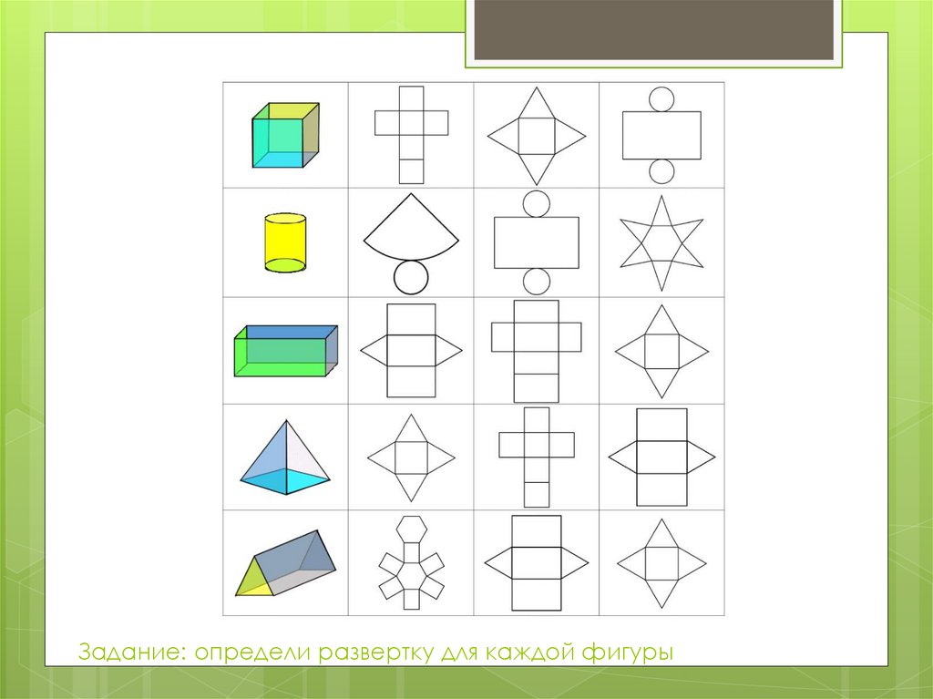 Задание: определи развертку для каждой фигуры10.