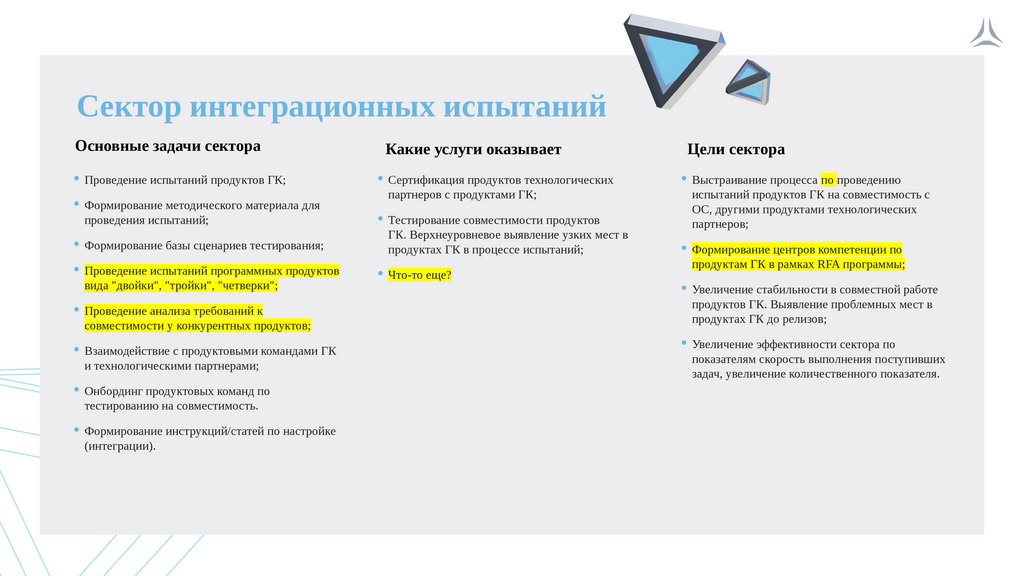 · Улучшение процесса проведения испытаний на
