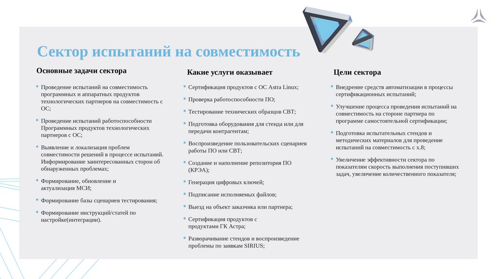 Сектор испытаний на совместимостьОсновные задачи сектора
