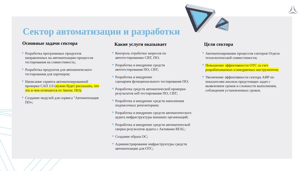 Сектор автоматизации и разработкиОсновные задачи сектора