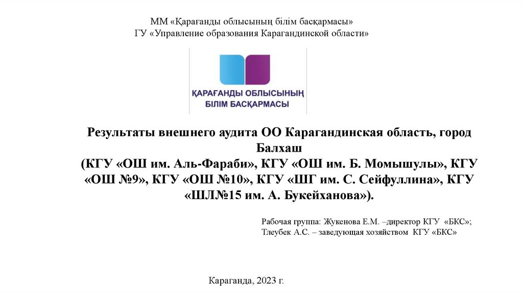 Результаты внешнего аудита ОО Карагандинская область, город Балхаш