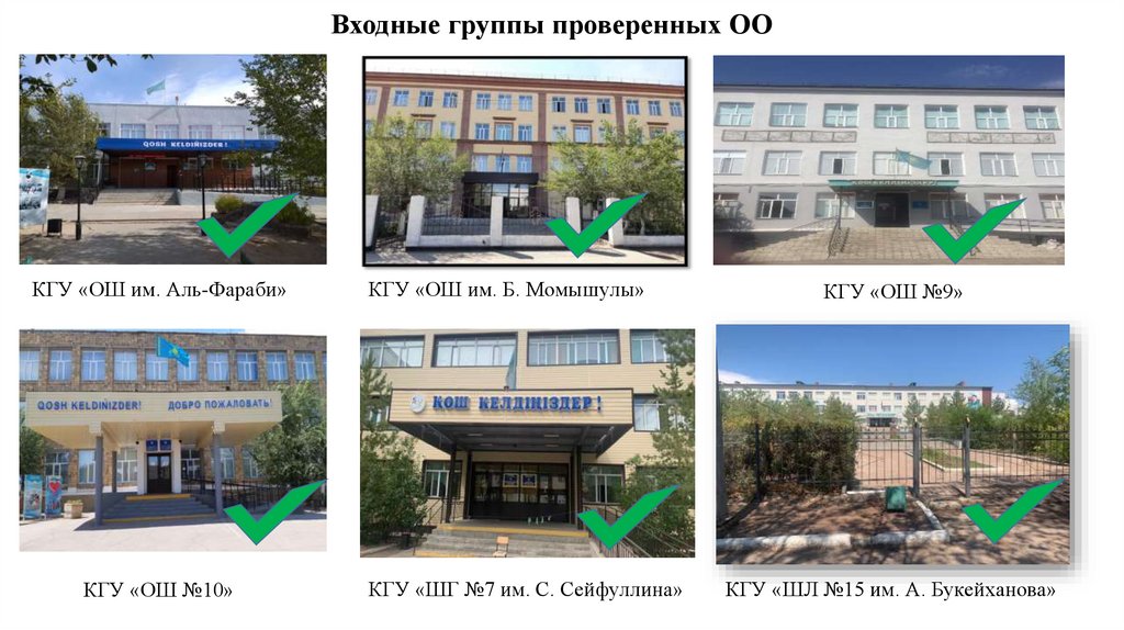 Входные группы проверенных ООКГУ «ОШ им. Аль-Фараби»
